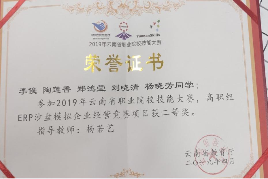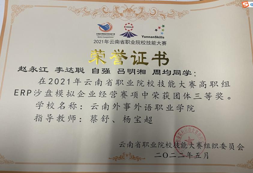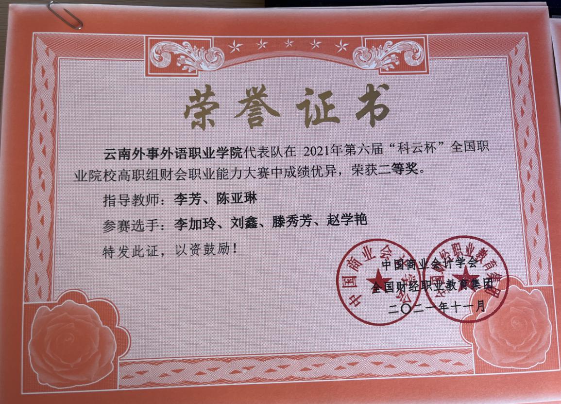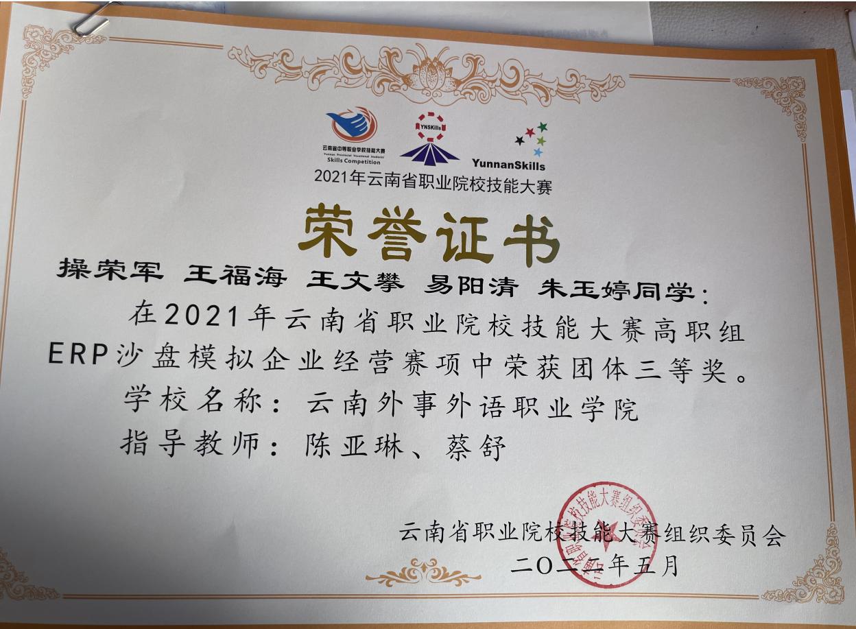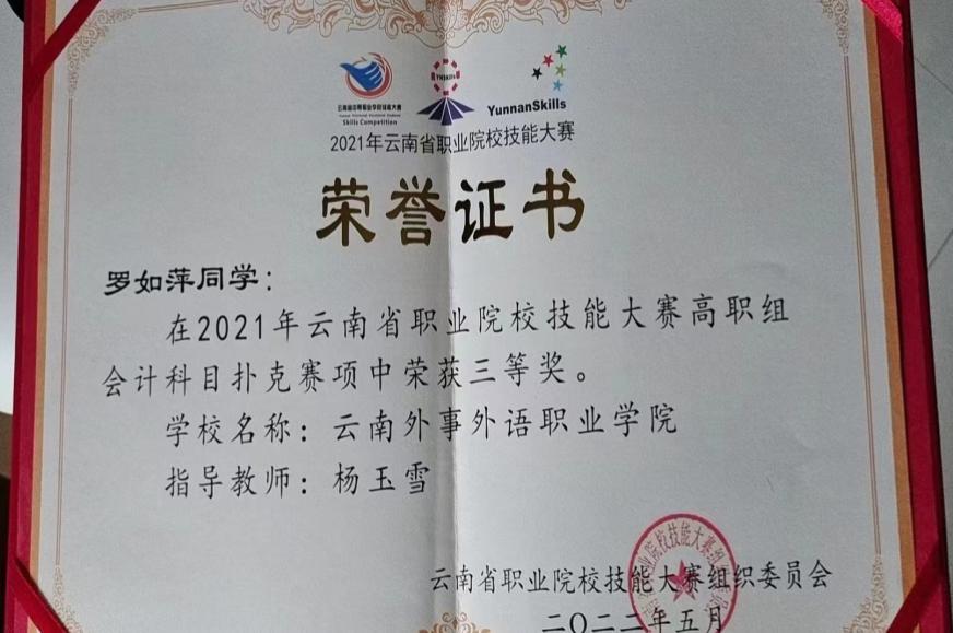 2020年云南省“衡信杯”高职院校财税技能大赛高职组三等奖。