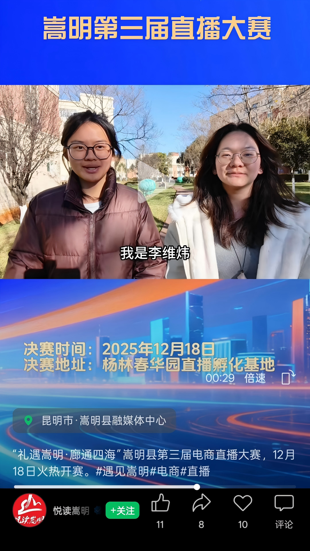 12月18日,以“礼誉嵩明,郎通四海”为主题的嵩明县第三届电商直播大赛完美收官。我校工程与电商学院电子商务专业的学生李晓霞、崔泽鹏、李维炜在柴皓莉老师的悉心指导下组队参赛。他们凭借扎实的专业功底和稳定的现场表现,从众多参赛队伍中脱颖而出,成功晋级决赛。
