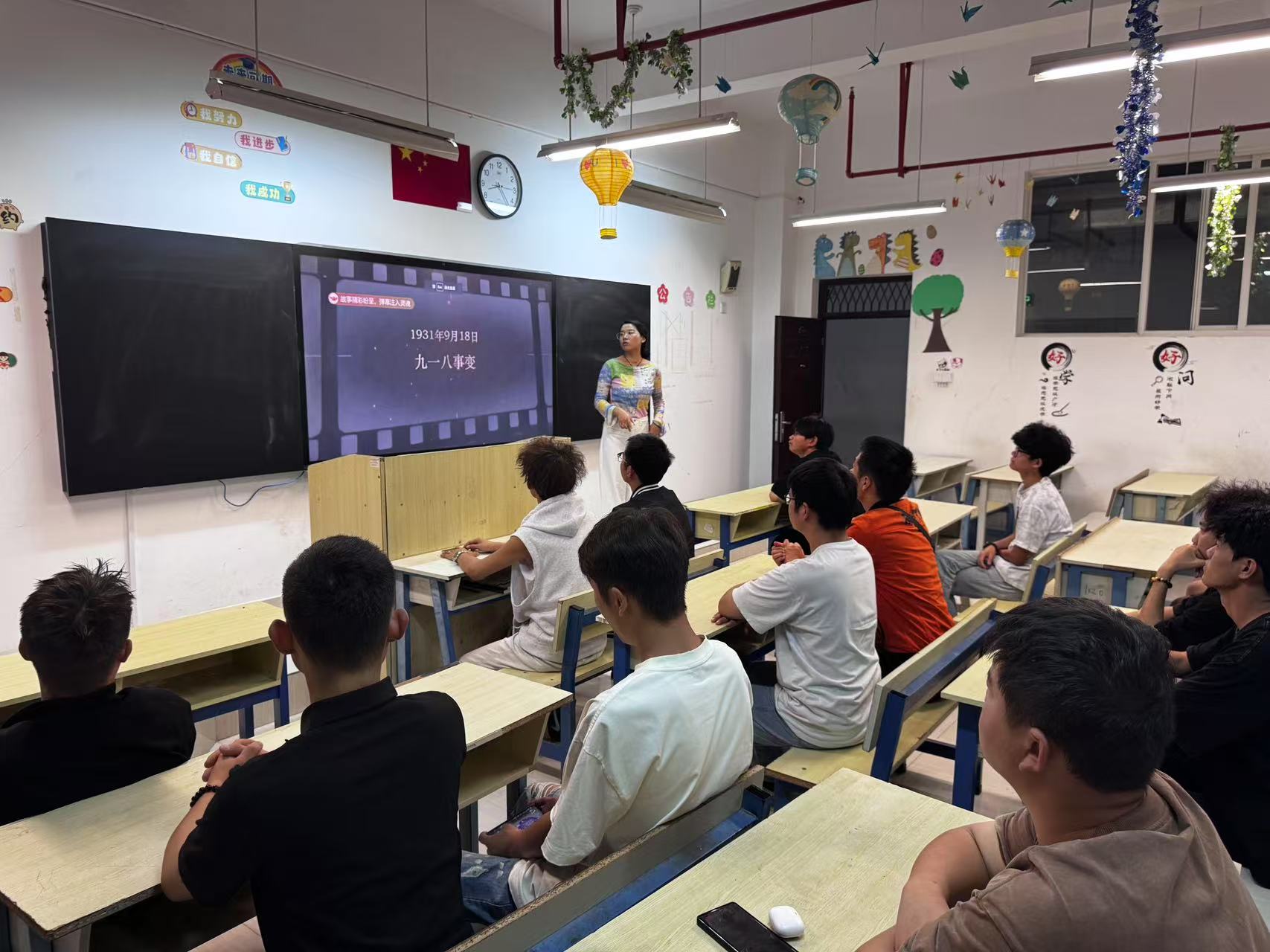 各班举行默哀仪式,庄严肃立,深切悼念在抗日战争中英勇牺牲的革命烈士和遇难同胞。各班级也分别组织开展主题班会,通过观看纪录片、讲述历史事件、分享感悟等形式,重温那段不容忘却的历史,激发同学们的爱国热情与奋斗决心。